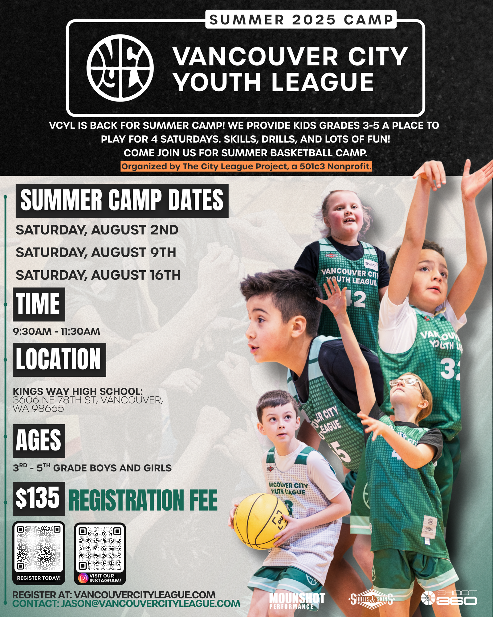 The Vancouver City Youth League (VCYL), is a dynamic youth basketball program designed to inspire and develop young athletes both on and off the court. Focused on fostering teamwork, discipline, and sportsmanship, the VCYL provides a structured environment where players of all skill levels can grow their abilities and confidence. With experienced coaches and a supportive community, the program emphasizes not only athletic achievement but also personal development, ensuring every participant gains valuable life skills through the game of basketball.